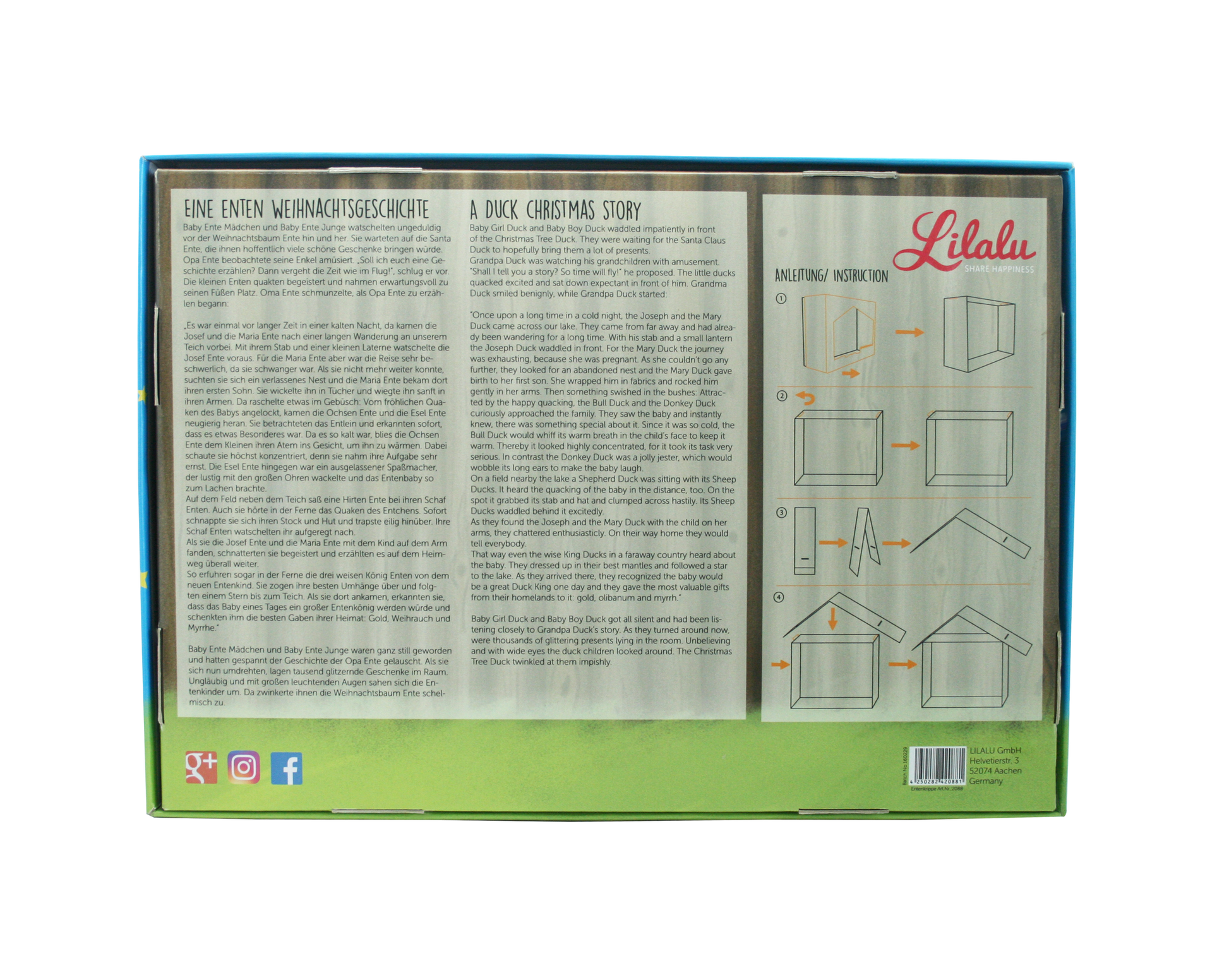 You have never seen the crèche of this kind before: Marie and Joseph, the shepherd and the mage kings and all the animals! In four simple steps, you can transform the package into a stable with a starry sky. Those who want to know what they are talking about are invited to read "The story of Christmas in duck". Simple and inventive - as a gift or for your greatest pleasure at home!