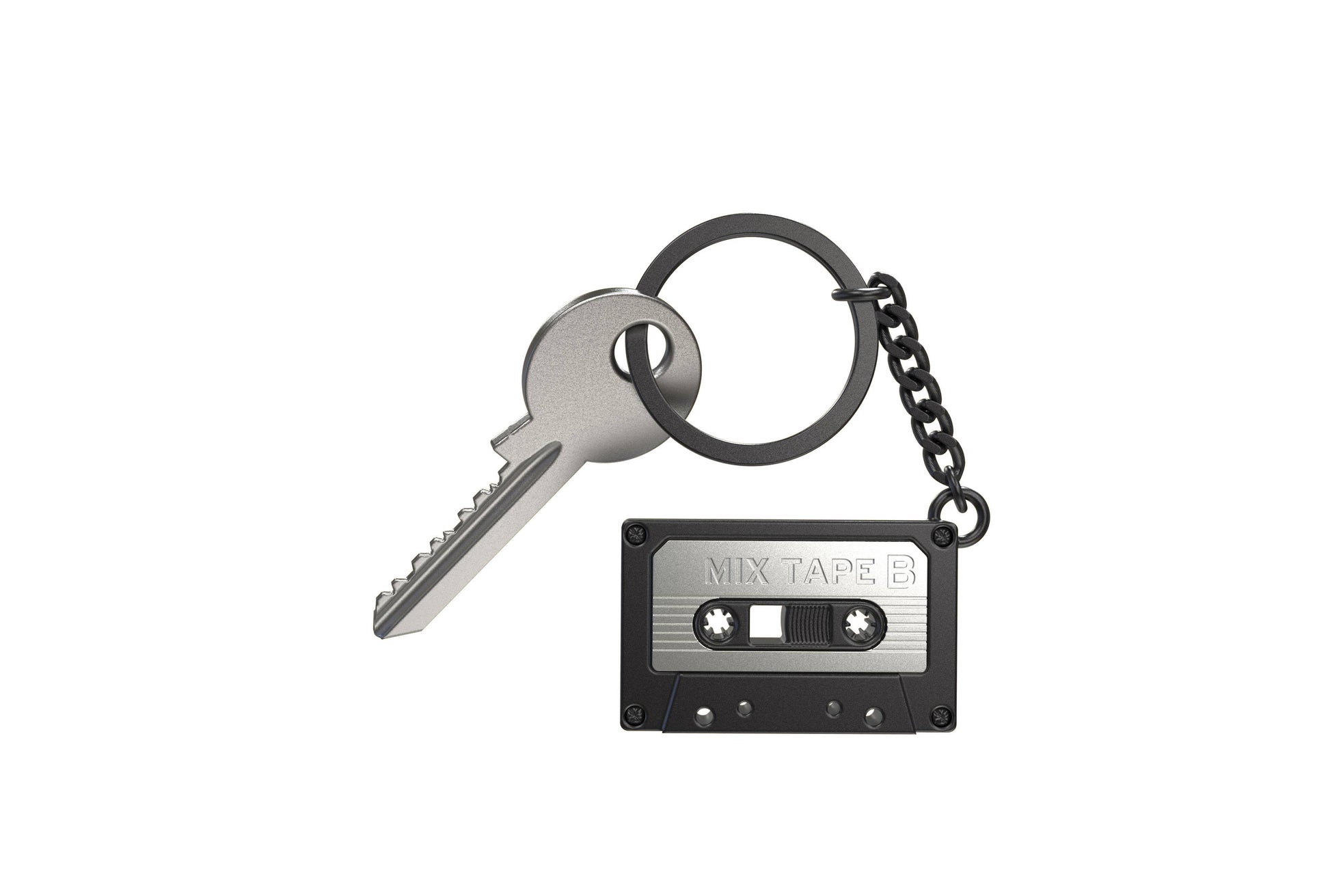 Unser Ring aus hochwertigem Metall verleiht Ihrem Schlüsselbund ein robustes und wertiges Aussehen. Das Design erinnert mit seinen charakteristischen Formen und Details an eine typische Musikkassette.