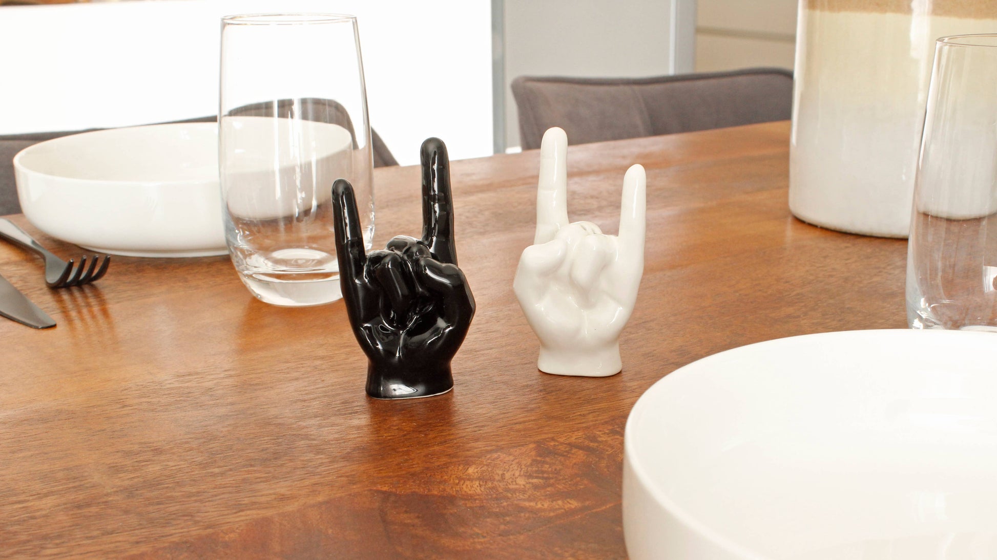 Verleihen Sie Ihrem Tisch mit dem „Rockhand Salz- und Pfefferstreuer-Set“ einen Hauch Rock 'n' Roll – ein rebellisches und stylisches Duo, das Ihren Gerichten nicht nur Geschmack, sondern auch eine gewisse Lässigkeit verleiht. Diese Salz- und Pfefferstreuer sind mehr als nur Gewürzspender; sie verkörpern einen entspannten Lebensstil.
