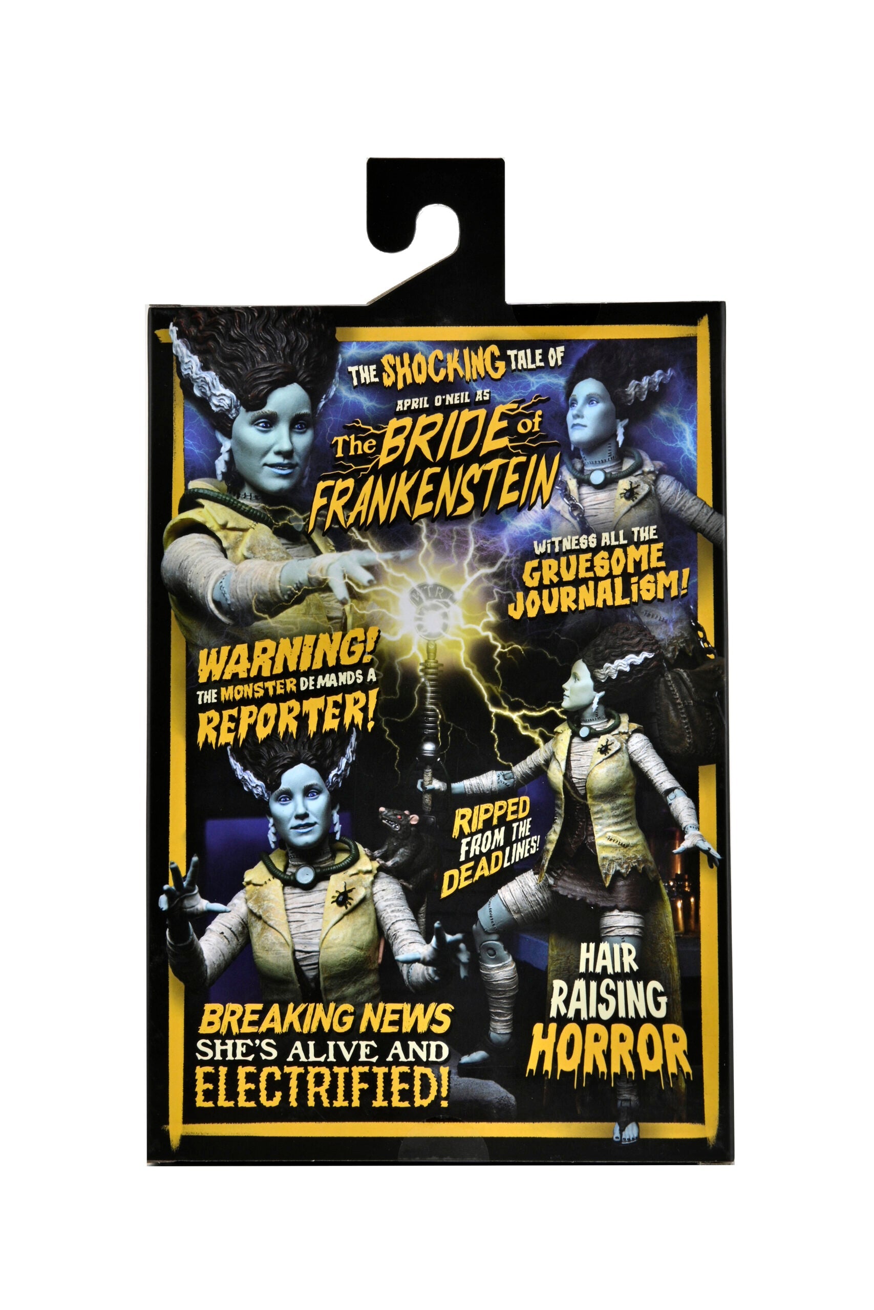 April as The Bride réinvente April O'Neil de Judith Hoag en tant que mariée de Frankenstein dans un mashup terrifiant ! Des révélations électrisantes ! Des reportages choquants ! C'est le journalisme qui va vraiment à la jugulaire. Le seul journaliste réanimé de WTRL déterre la saleté avec un assortiment complet d'accessoires et ne manque jamais une DEADline... Cette figurine à l'échelle 7" comprend un microphone, un sac à main, une araignée, un éclair sai, des têtes interchangeables et des mains interchangeables.