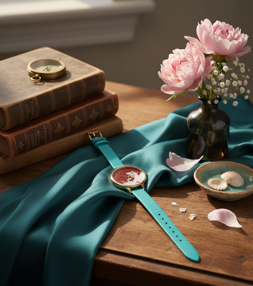 Disney Arielle montre analogique de collection, avec cadran recouvert de paillettes argentées et bracelet en similicuir dans un coffret cadeau élégant de 9x6x12 cm.