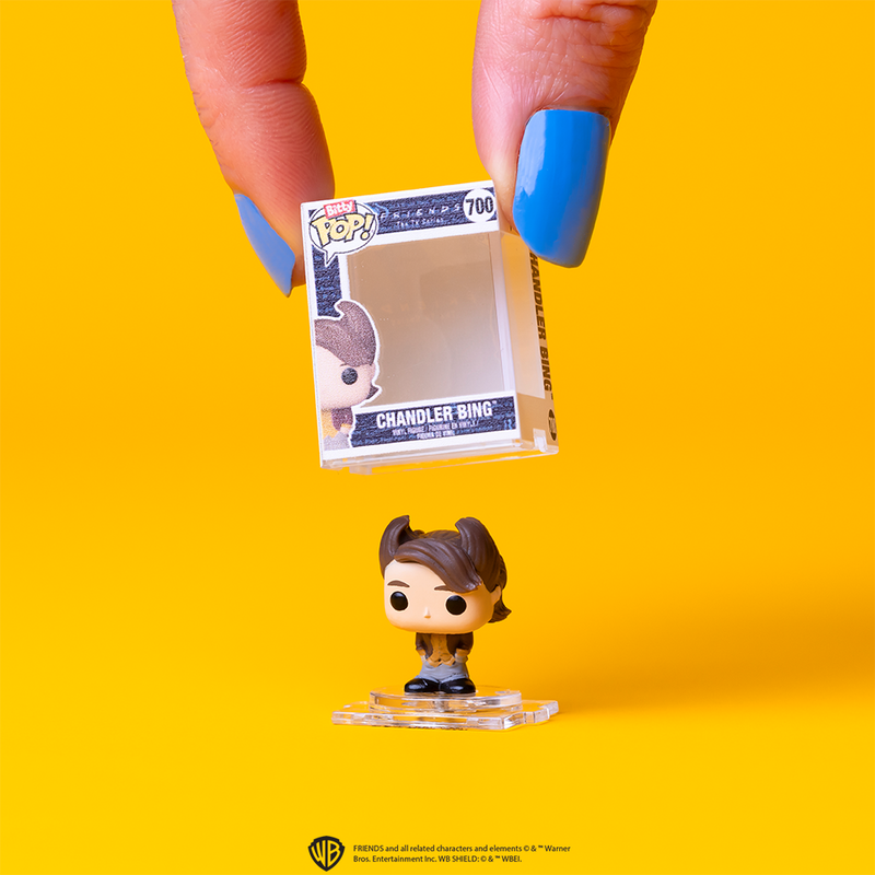 Vos Pops Friends™ préférées ! ont été réduits en Bitty Pops ! Agrandissez votre collection avec cet assortiment de Bitty Pop ! figurines représentant vos personnages de sitcom les plus appréciés sous forme de figurines miniaturisées ! Ce pack de 4 comprend Bitty Pop ! Rachel Green™ (cheveux des années 80), Bitty Pop ! Chandler Bing™ (cheveux des années 80), Bitty Pop ! Ross Geller™ (80's Hair) et un mystère Bitty Pop ! chiffre. Le possible mystère Bitty Pops ! sont Hyper Rare (1/6) Joey Tribbiani™ (Cowboy), Hyper Rare (1/6) Phoebe Buffay™ (Clip musical), Rare (1/3) Phoebe Buffay™ (Costume d'Halloween) et Rare (1/3) ) Joey Tribbiani™ (dans les vêtements de Chandler).