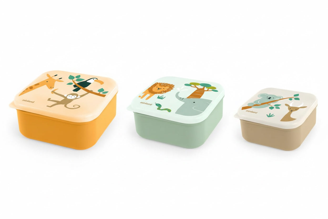 🐵 Set de Boîtes à Lunch Jungle – Miniland (3 tailles : 230 ml, 350 ml, 540 ml)