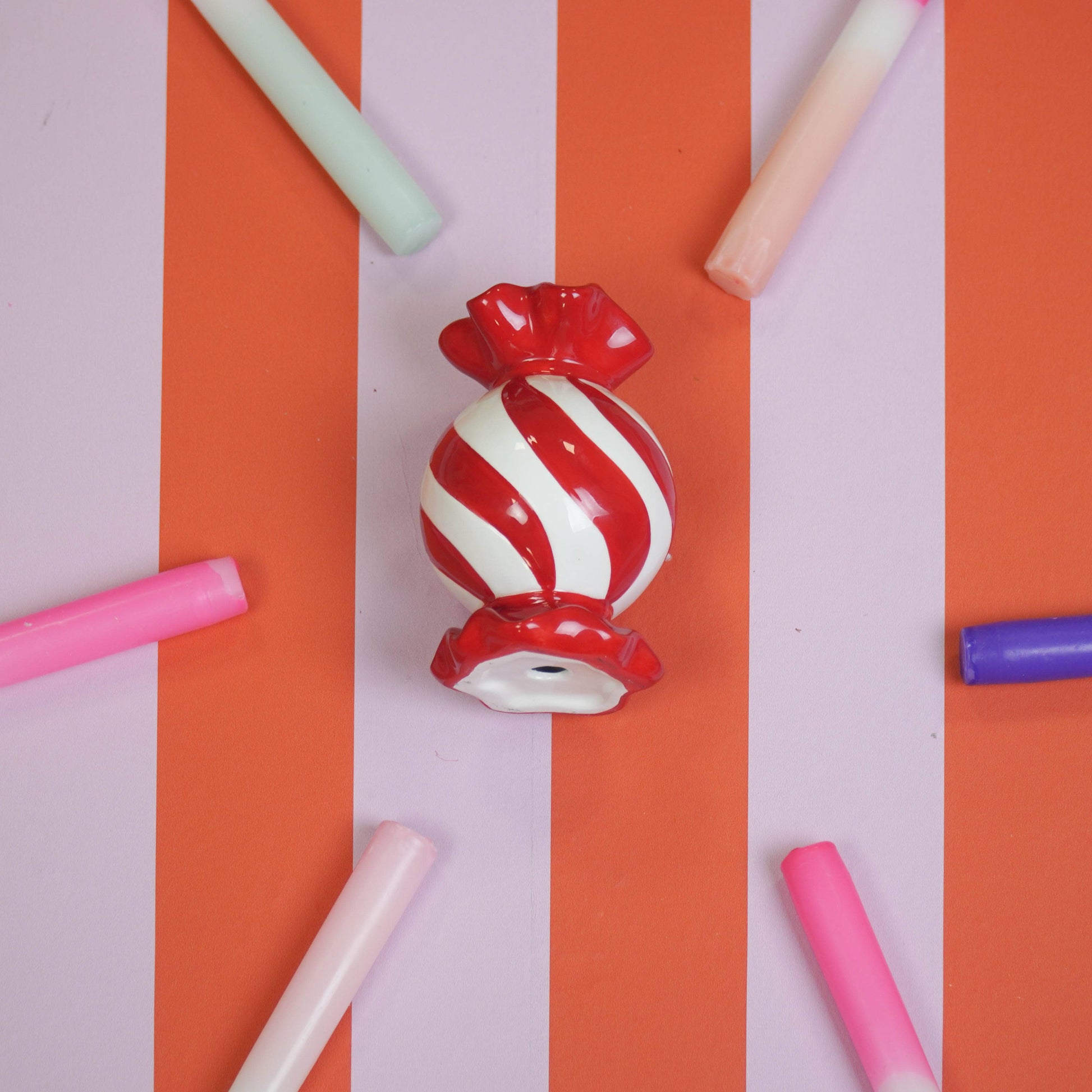Bougeoir - Bonbon Toffee - Rouge/Blanc - 8,5x8,5x13 cm