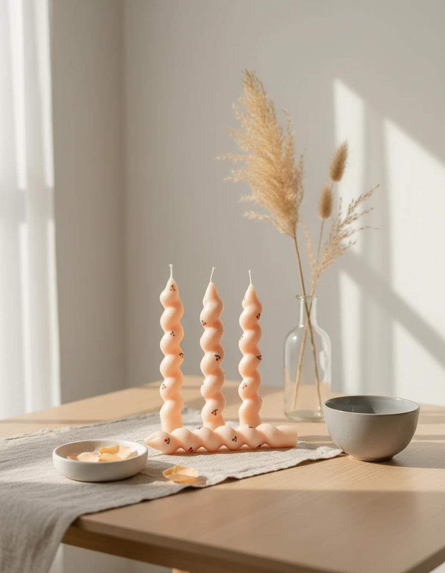 Bougie torsadée peinte à la main Cherry Peut brûler en toute sécurité et parfait pour l'été/le printemps pour la décoration !