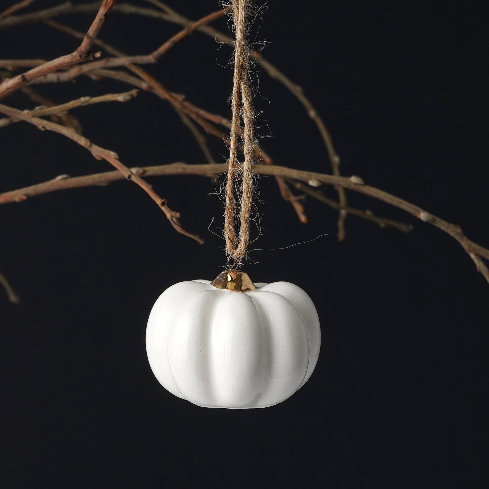 Charme Saisonnier Élégant | Cette décoration de citrouille suspendue en céramique blanche apporte une touche d'élégance discrète à votre décoration d'automne ou d'Halloween.