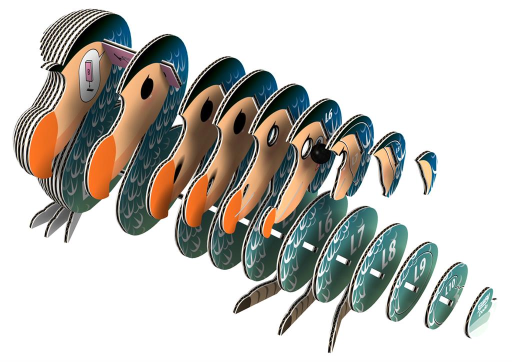 Eugy 3D Modèle: OISEAU / DODO 7,4x3,7x7,7cm, en carton, en boîte, 6+