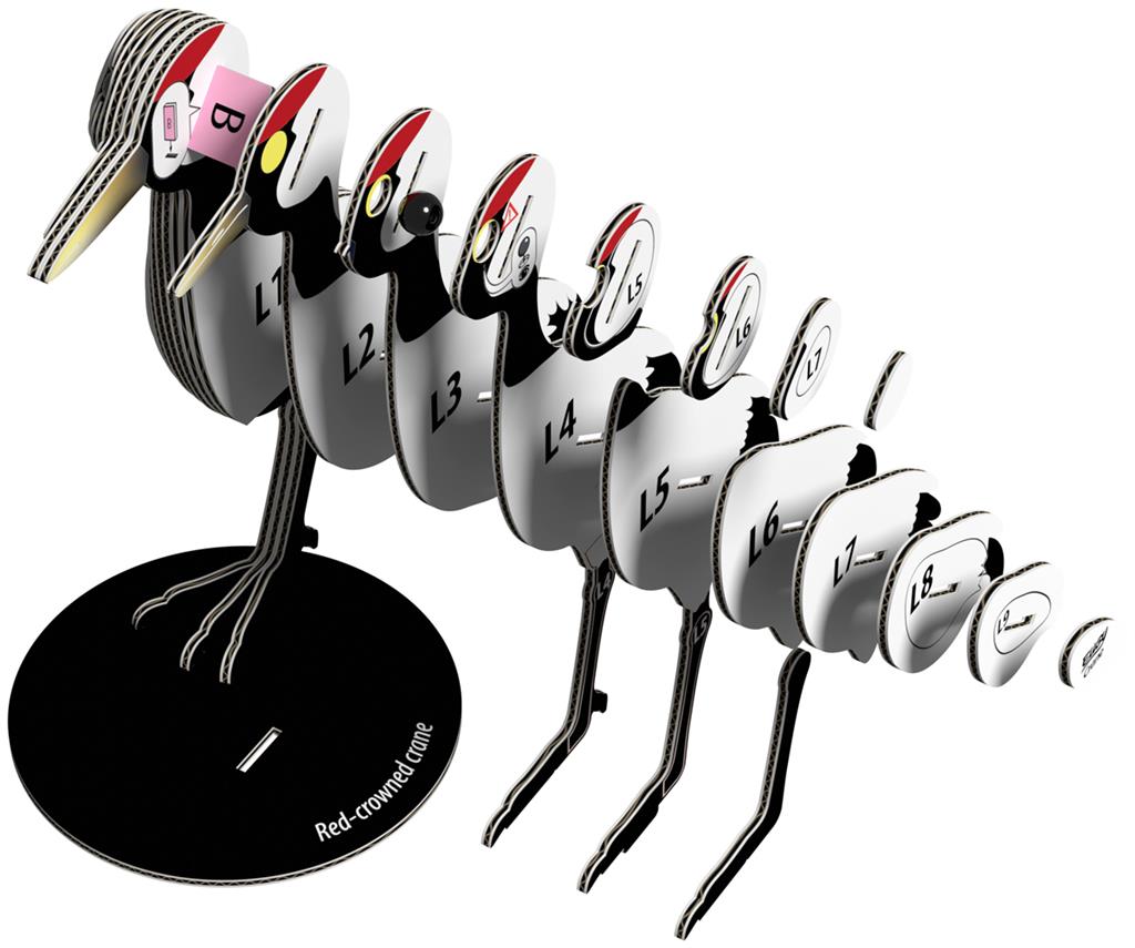 Eugy 3D Modèle:  OISEAU / GRUE 8,4x7x13cm, en carton, en boîte, 6+