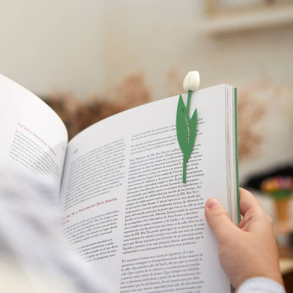Fonctionnel et amusant : la fleur de tulipe colorée dépasse du haut du livre, vous ramenant au point de lecture où vous vous êtes arrêté.