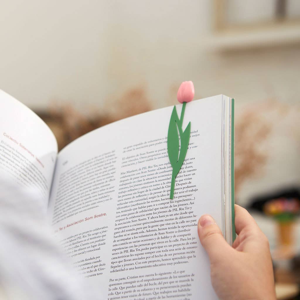 Fonctionnel et amusant : la fleur de tulipe colorée dépasse du haut du livre, vous ramenant au point de lecture où vous vous êtes arrêté.
