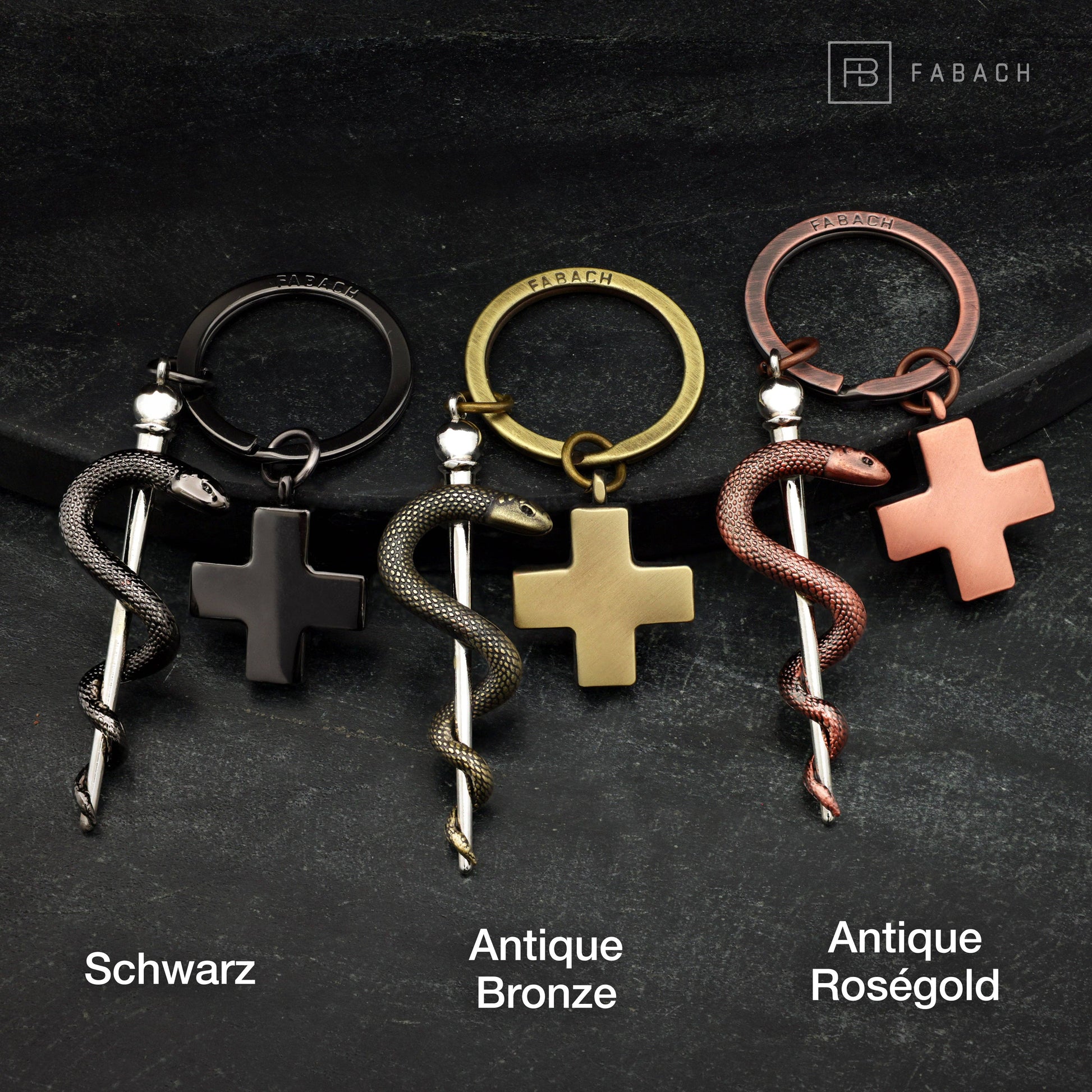 🐍 Asclepios - Dans le signe du serpent : le Bâton d'Esculape est le symbole de la médecine et de la médecine. Le bâton enveloppé dans un serpent était à l'origine l'attribut d'Asclépios (en allemand : Esculape), le dieu de la médecine dans la mythologie grecque. Avec la croix médicale, le porte-clés représente toutes les professions et tous les domaines d'activité du secteur de la santé, de l'infirmière au médecin, de l'infirmière en gériatrie au pharmacien.