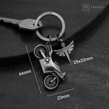 🏍️ Message d'amour pour les motocyclistes : vos proches voyagent constamment en moto ou ont-ils simplement leur permis moto en poche ? Alors vous avez besoin d'un ange gardien adapté ! Notre porte-clés pour moto est le cadeau idéal pour un porte-clés. En tant que porte-bonheur et compagnon permanent, il est synonyme de bonne conduite et d'arrivée en toute sécurité.