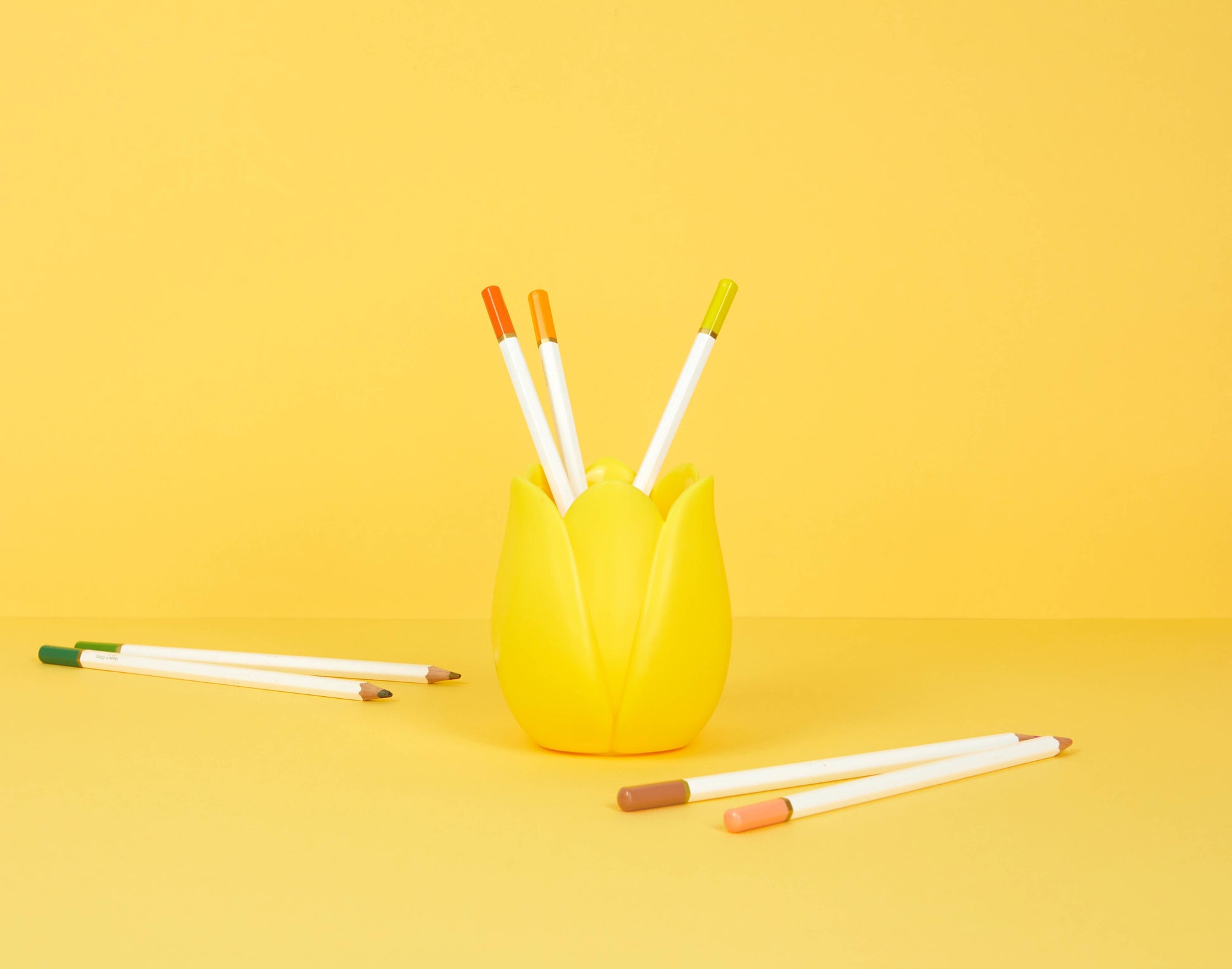 PRATIQUE. Gardez votre bureau toujours en ordre avec ce porte-crayons, un indispensable pour avoir à portée de main vos stylos et autres accessoires de papeterie. DESIGN ORIGINAL. Cette fleur de tulipe apportera une touche fraîche et colorée à votre bureau ou table de travail. Vous pouvez également l'utiliser pour vos brosses à dents, pinceaux, entre autres. RÉSISTANT. Fabriqué en matériau de haute durabilité. Disponible en 4 couleurs attrayantes. CADEAU PARFAIT. Idéal pour les amateurs de printemps, de tulipes, ou de fleurs en général. Dimensions : 9,5x8,5x8,5 cm - Matériau : plastique - Design : Balvi