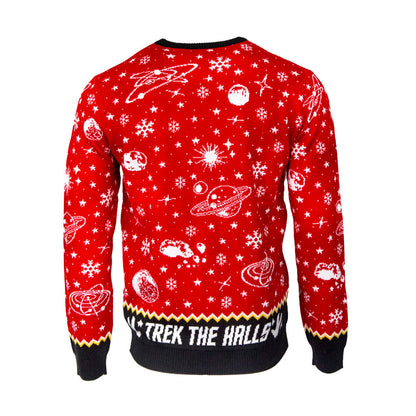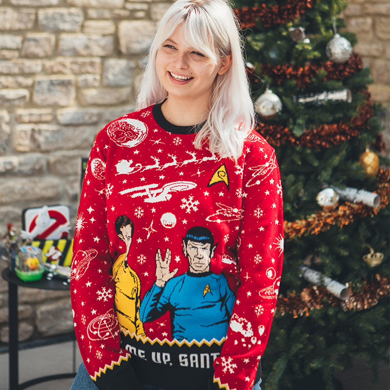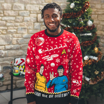 À la recherche d'un extra-spatial, ahem, nous voulons dire un pull Star Trek Chrimbo extra-spécial? Heureusement pour vous, vous n'aurez pas besoin de voyager dans un univers alternatif pour en obtenir un. Diffusez un bon message de Noël et dites à vos proches de "vivre longtemps et prospérer" avec ce superbe vêtement d'hiver. Présentant les héros de l'Enterprise Captain Kirk et Spock sur le devant, c'est le chandail de Noël idéal pour tout amateur de Trekkie.