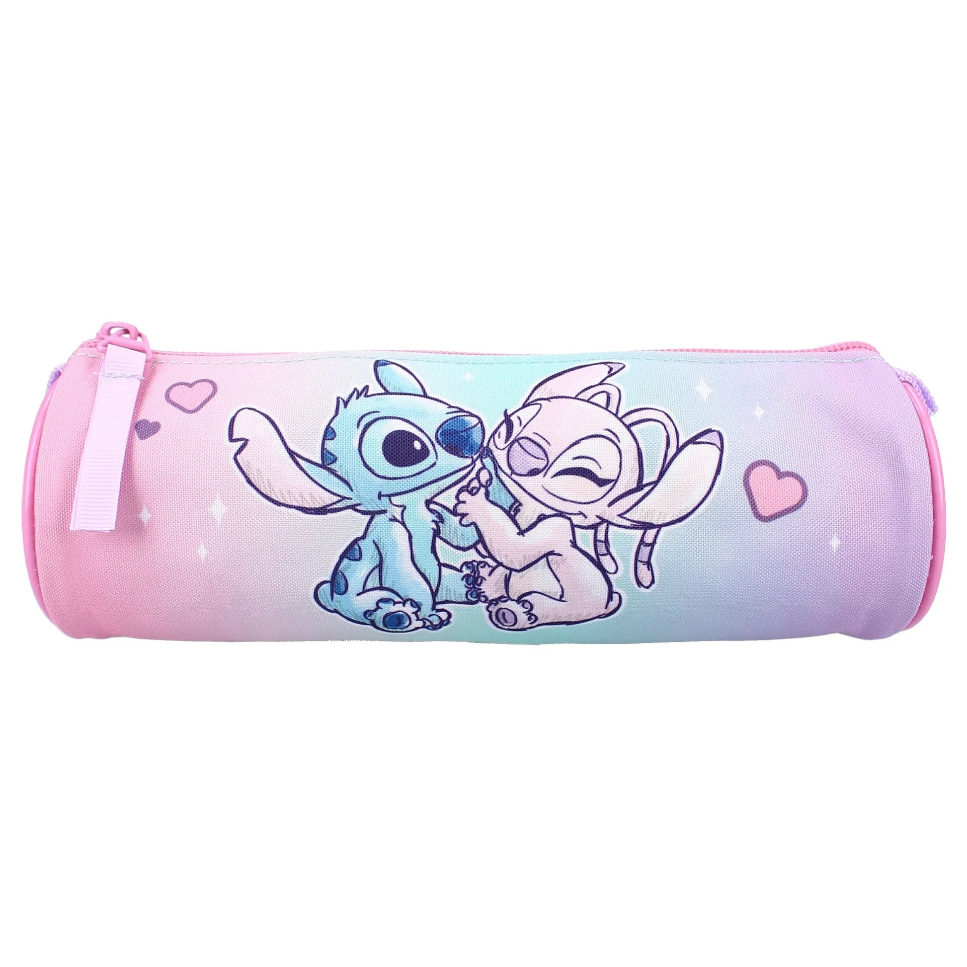 Vous avez cette trousse Stitch de la collection Hello Cutie à la maison ? Dans ce cas, votre enfant voudra certainement l'emporter partout ! C'est bien sûr à cause de Stitch & Angel, qui apparaissent sur le devant de cette trousse à crayons. L'extraterrestre fou a l'air heureux avec un grand sourire contagieux. Il se détache magnifiquement sur la trousse rose et vole la vedette. La trousse est ornée de détails bleus et violets, notamment au niveau de la fermeture éclair.