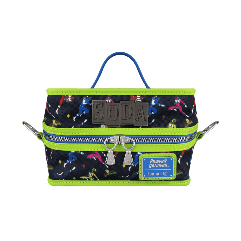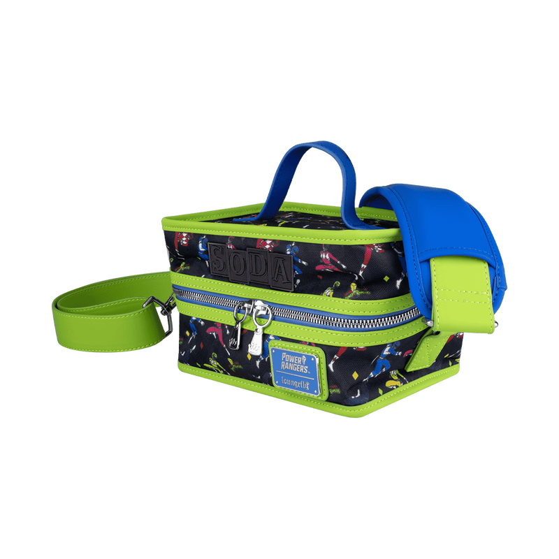 La glacière présente un motif des Power Rangers sautant au combat. Cette glacière a une doublure isolée, une bandoulière amovible, du matériel de couleur argent brillant, des tirettes de fermeture éclair à languette soda, un logo Funko imprimé haute densité pour la doublure et est faite de nylon.