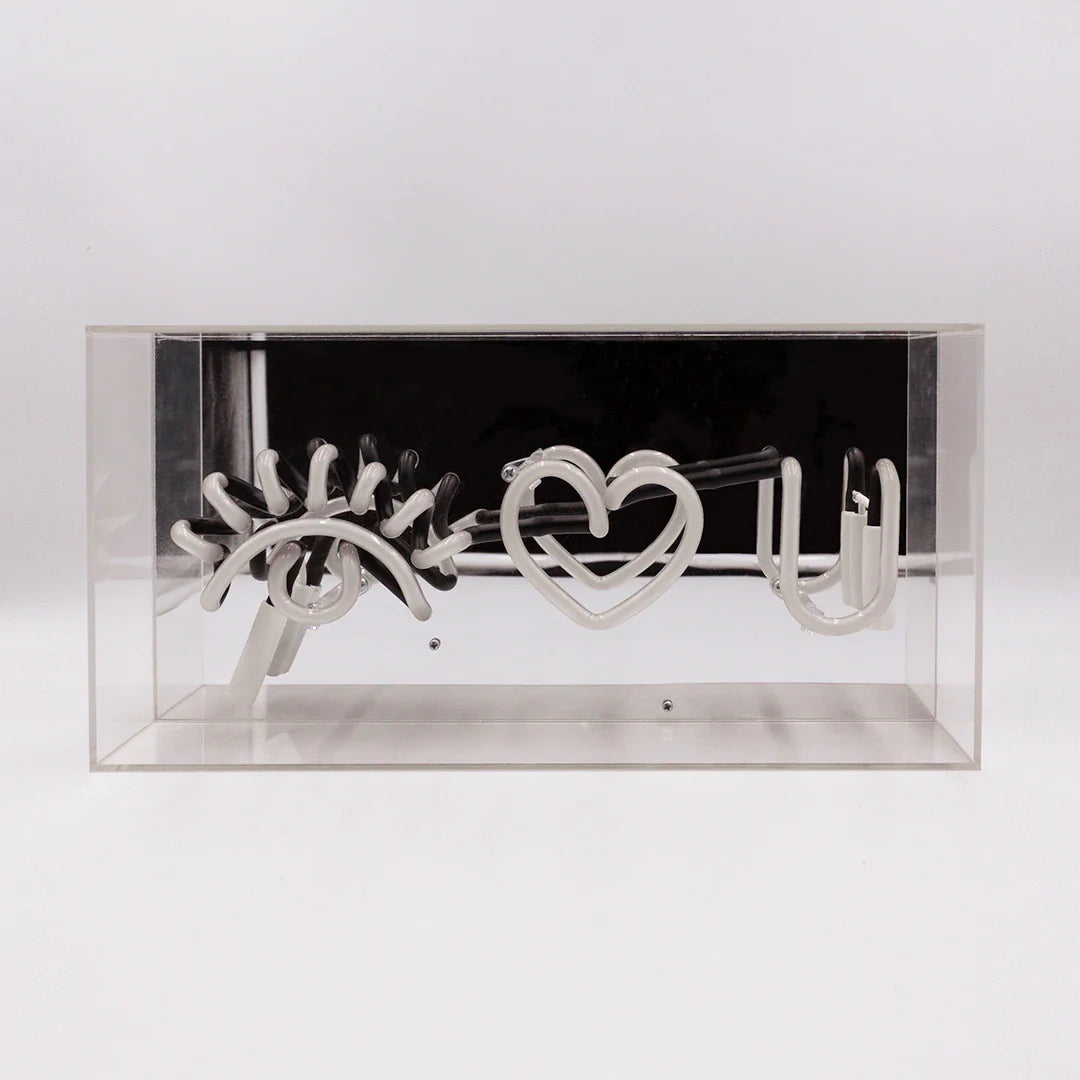 This "Eye Love You" neon lamp is available in blue, pink and yellow, wrapped in a beautiful shiny acrylic box with a mirror back. The perfect neon lighting room for your home or a unique gift for this special person.