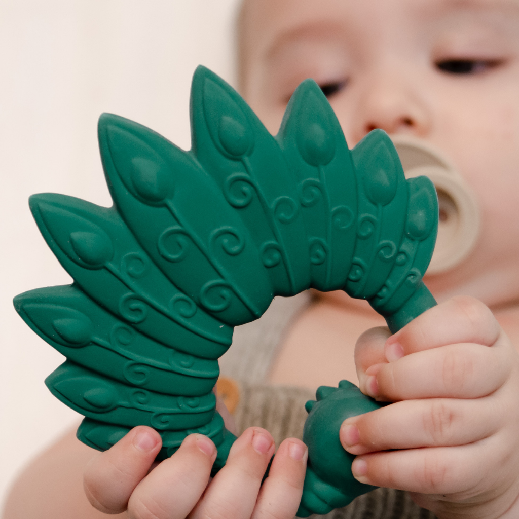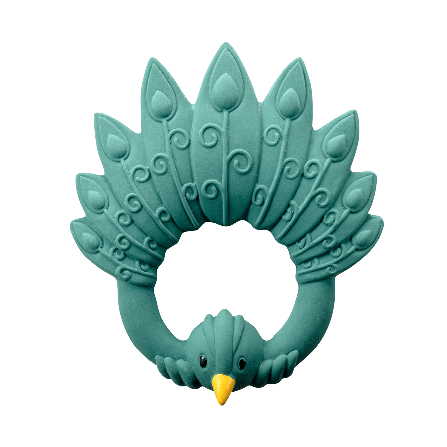 The beautiful and graceful peacock is now an amazing toy for sensory play, chewing, and bath time. The Natruba peacock is easy for little hands to grasp with different surfaces to encourage sensory play, and the soft natural rubber easily satisfies all stages of sore gums. Teething and bath time just got so beautiful!