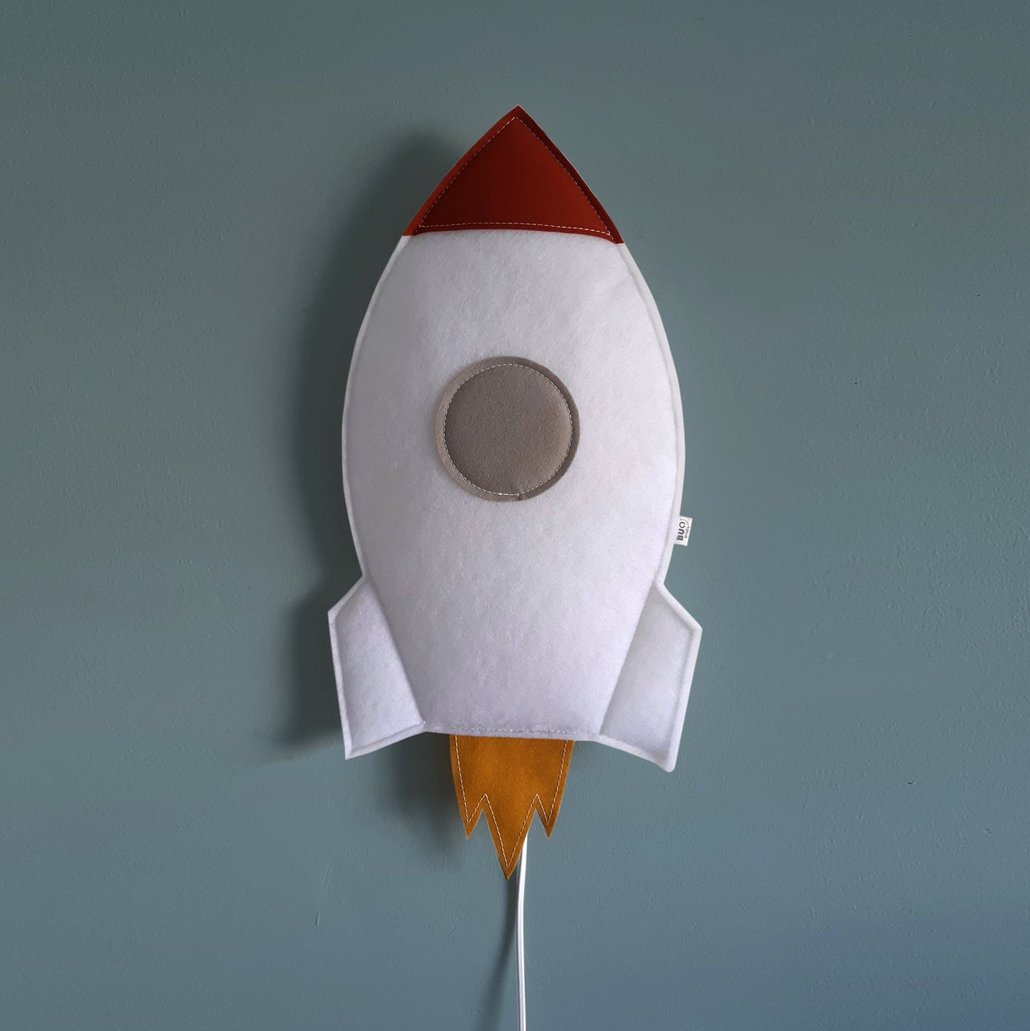 One more lamp, imagined by Buokids, with a rocket that leaves for the stars. Delivered with LED included.