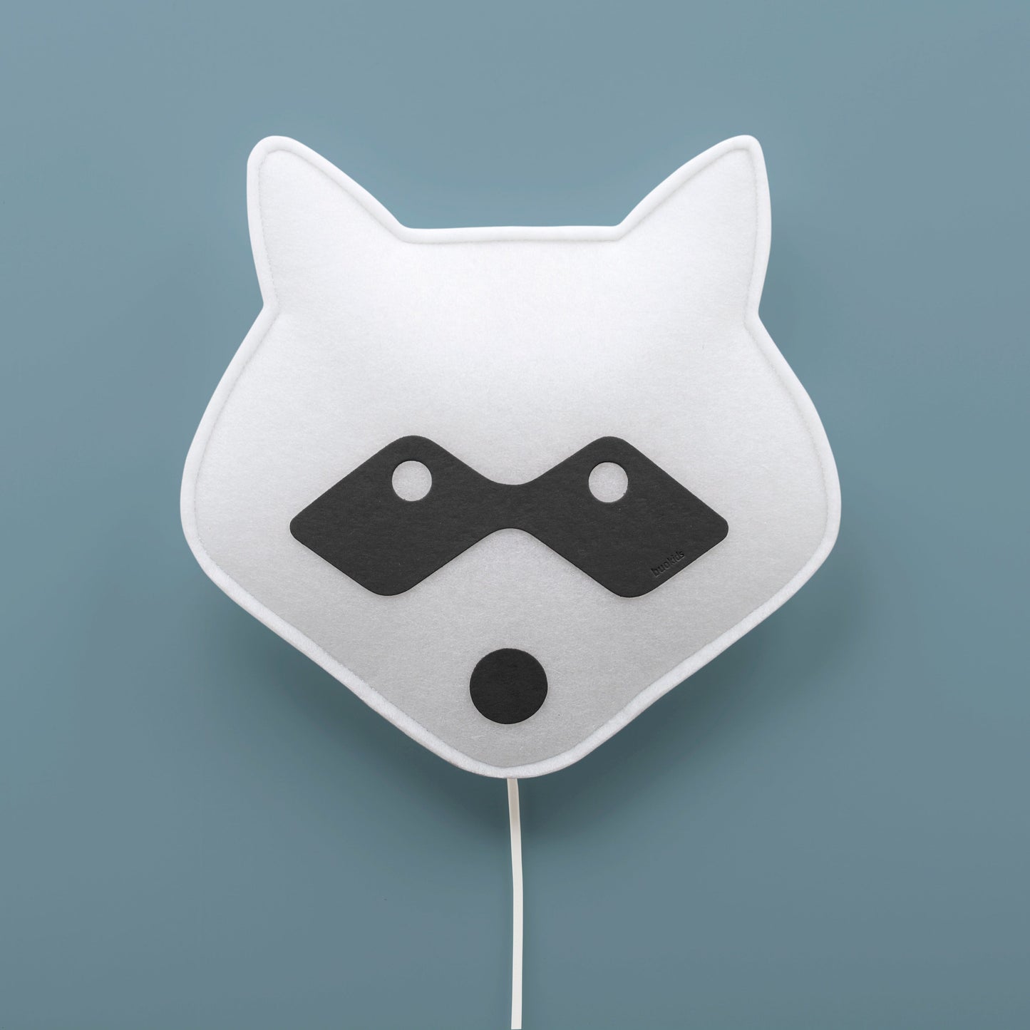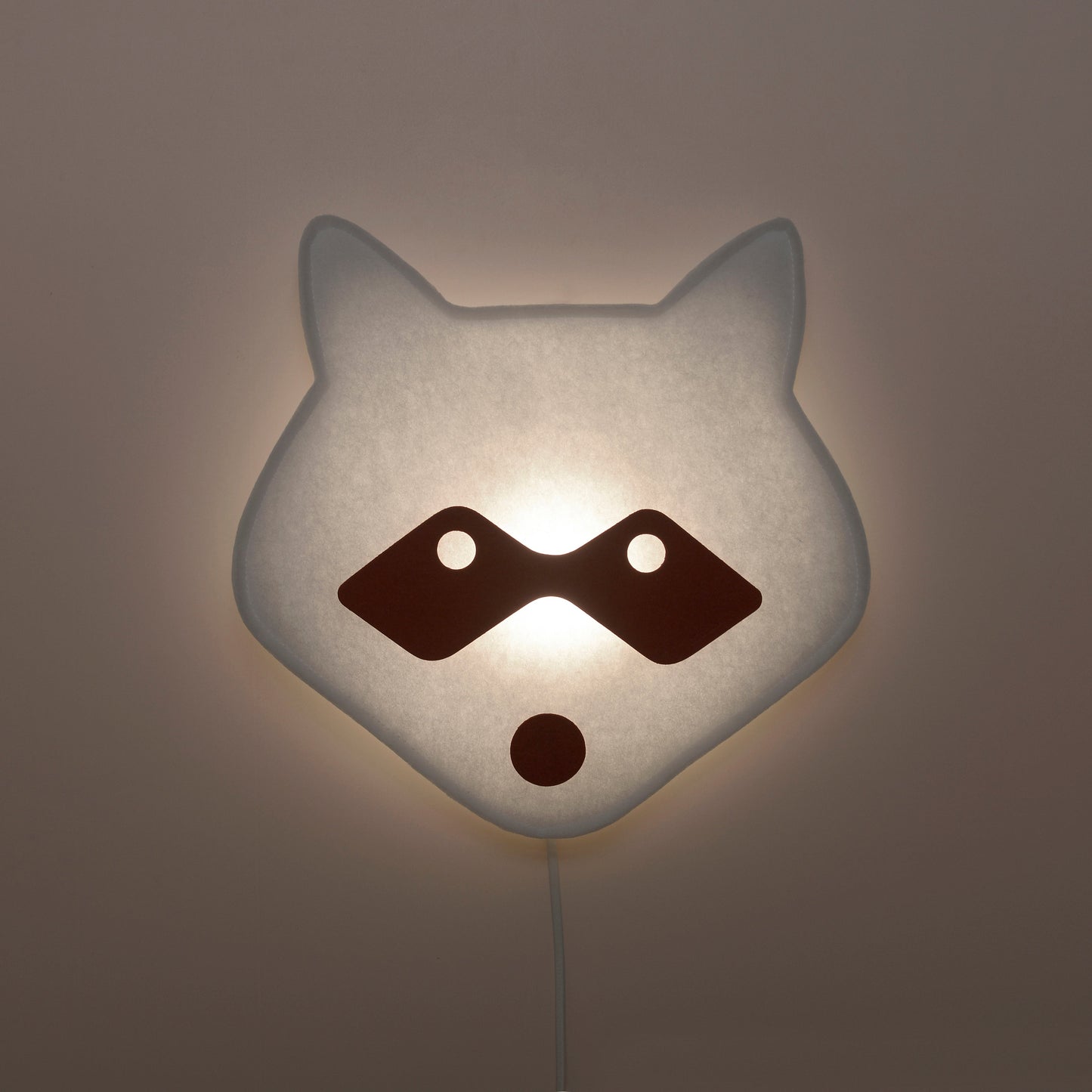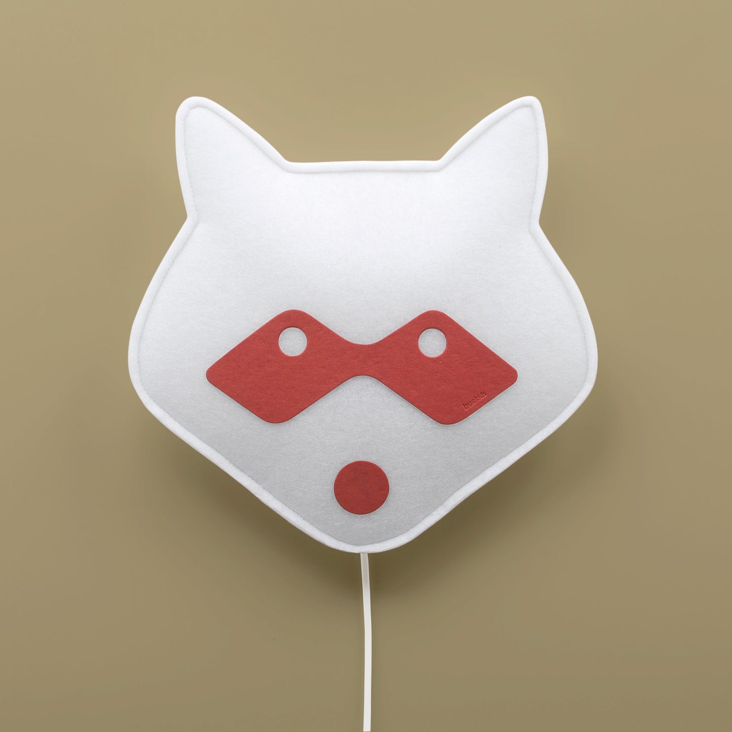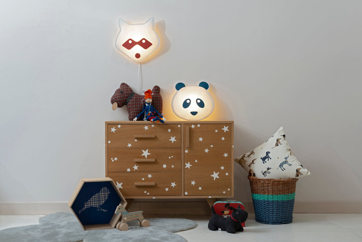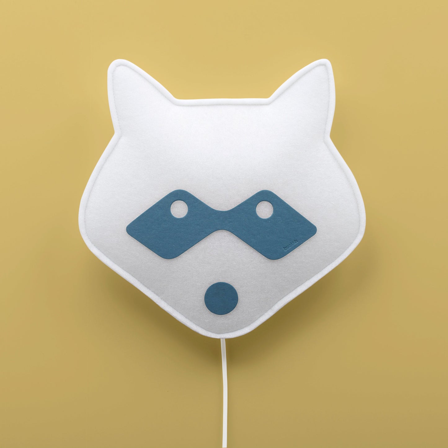 an ‘animal mask’ wallpaper to put in a child's room. LED Max 8W, GX53 bulb included, this tested. The equipment is made from recycled plastic bottles.