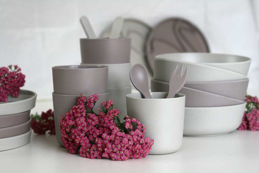 Plate, cup, mug and bamboo covers by Lille Vilde