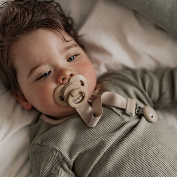 Our sucking attachment is the only elegant way to make sure that the baby's nipple remains clean. Classic or offbeat, relaxed or dressed, you choose. Flagship product, it comes back after a makeover and a change of clip. The elastic silicone ring can get attached to almost any type of tecks on the market and the wooden pliers with any type of clothing. Do not forget to choose an Elodie Details Assorted pacifier to complete the outfit!