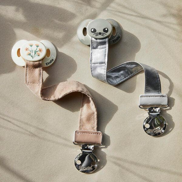 Our sucking attachment is the only elegant way to make sure that the baby's nipple remains clean. Classic or offbeat, relaxed or dressed, you choose. Flagship product, it comes back after a makeover and a change of clip. The elastic silicone ring can get attached to almost any type of tecks on the market and the wooden pliers with any type of clothing. Do not forget to choose an Elodie Details Assorted pacifier to complete the outfit!