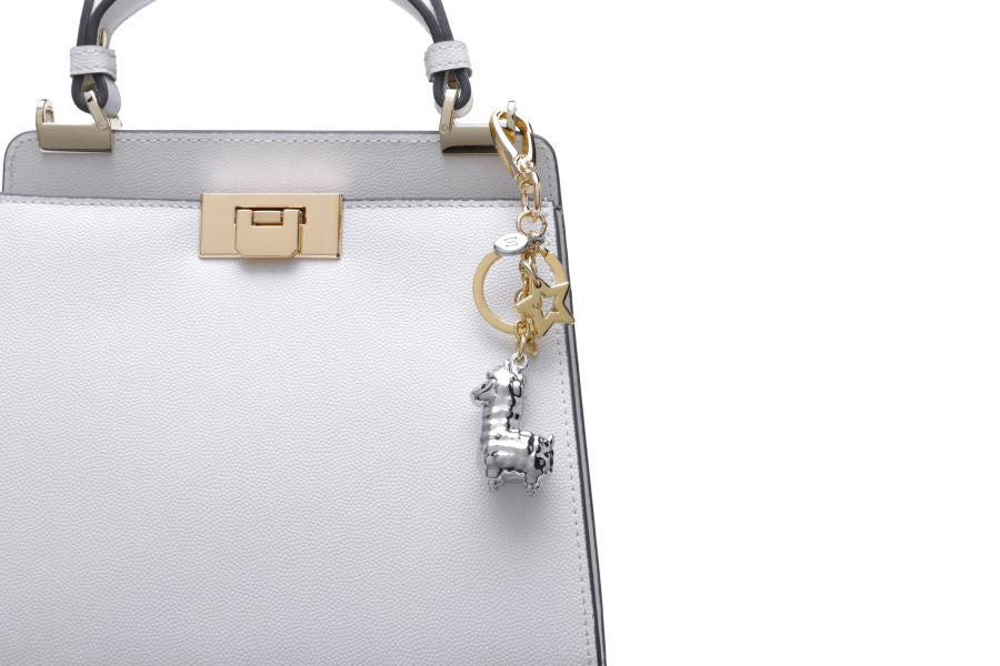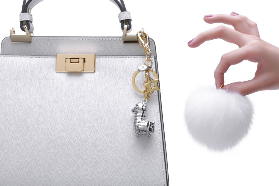 - Material: Zinc alloy + White Pompom (artificial fox hair)