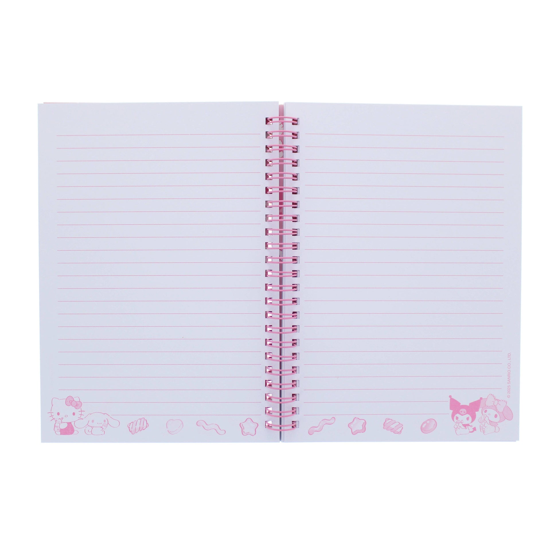 This A5 spiral notebook is a must-have! It features a super cute image of Hello Kitty and some of her friends on the front and back covers, as well as a glittery finish on the front. Inside, it contains 80 sheets of lined paper, so whether you're working or just have notes to jot down, this notebook is perfect for you.
