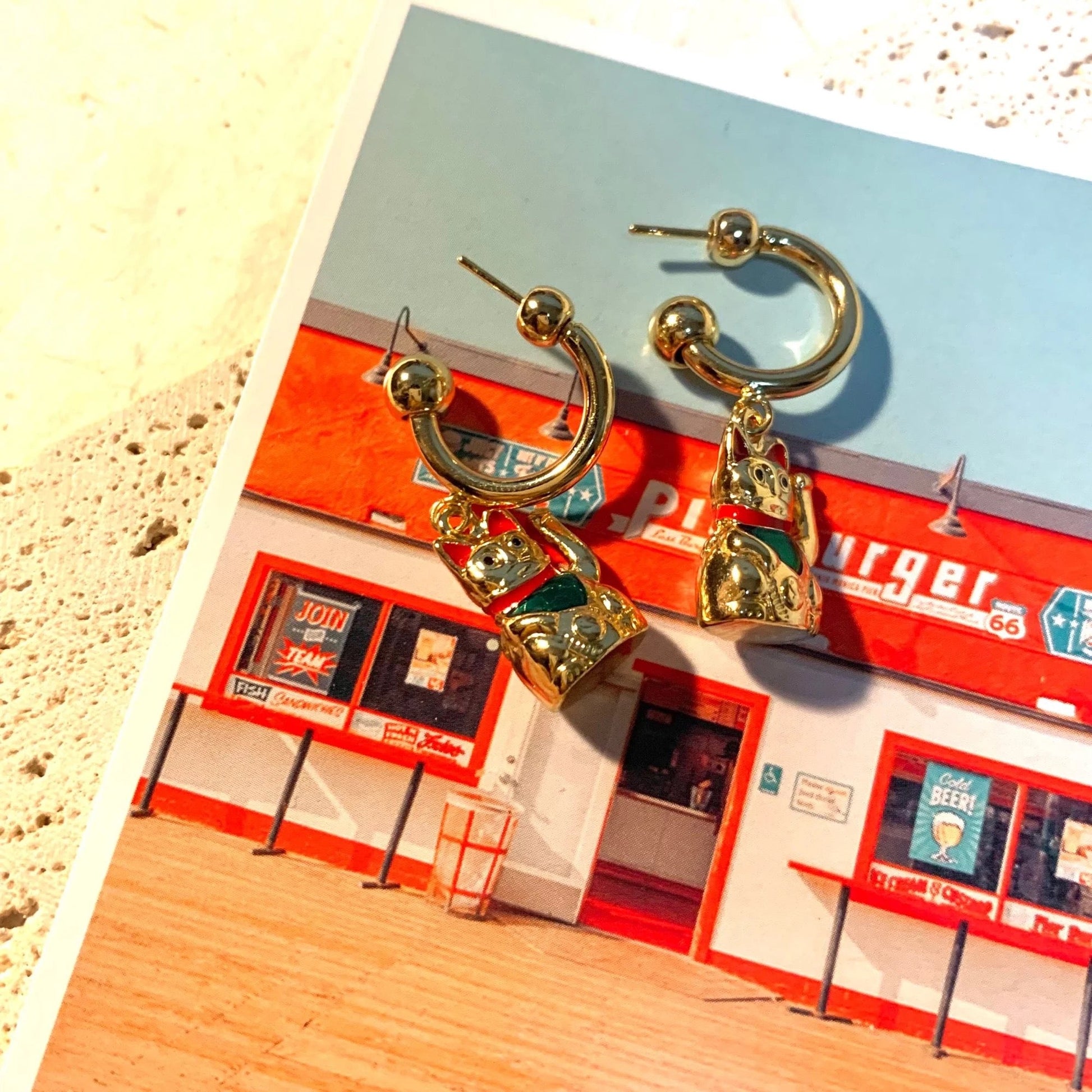 Golden Lucky Cat Earrings