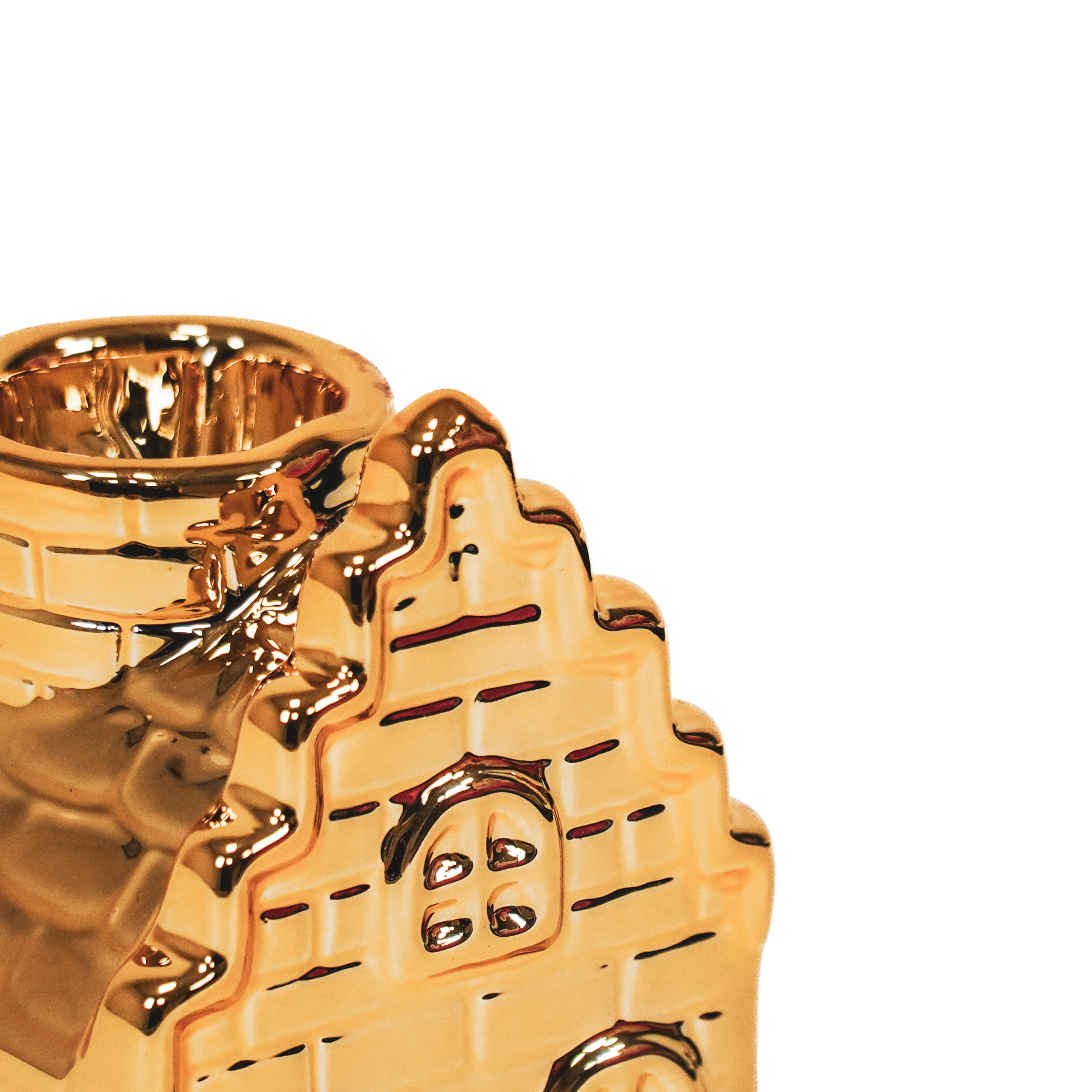 Candlestick - House - Ceramic - Gold - 6x6x11cm