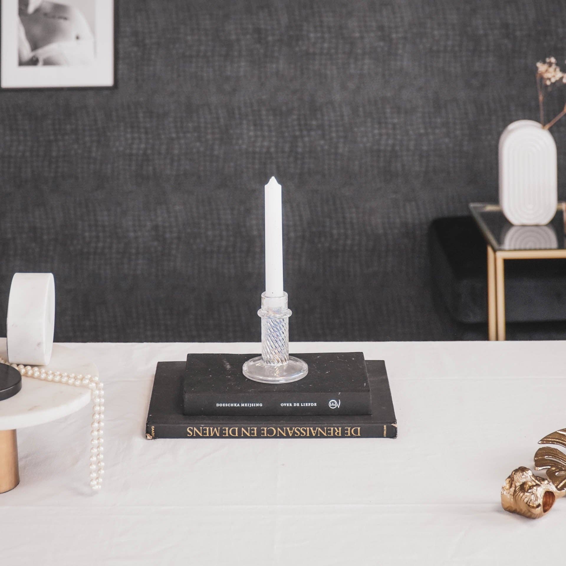 LIGHT UP - A dining table without candlesticks is a dining table without soul. These glass candlesticks are very elegant and always match. They will instantly enhance your dining table. Key features: - Made of glass - Size: 8x10cm Style tip: Combine 2 of these candle holders with a candle in a color that harmonizes with the rest of your interior.