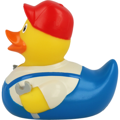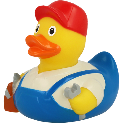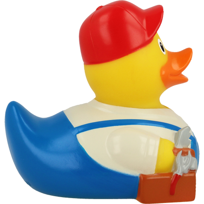 This handyman duck is on the way to the next site. With appropriate tools in its toolbox, it can help you when renovating your bathroom.