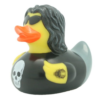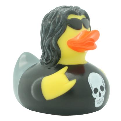 This hard rock duck is just unique. Long hair, sunglasses and dressed like a real rocker.