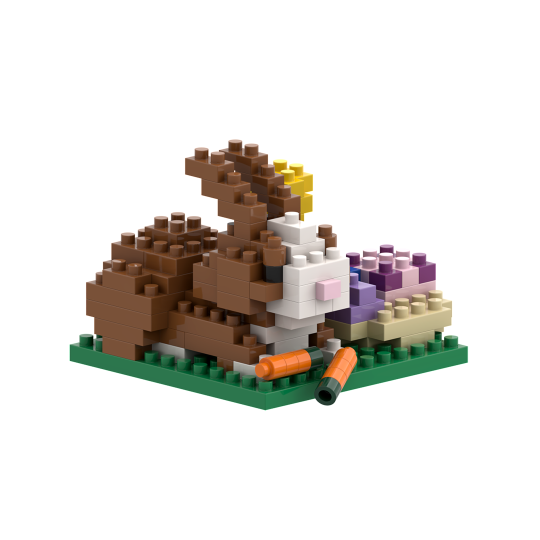 The "BRIXIES Easter Bunny" postcard includes a construction kit with a total of 136 bricks. Once assembled, the model measures approximately 4.8 cm long, 5.2 cm wide, and 4.3 cm high. BRIXIES brick sets are suitable for children aged 8 and over. The bricks are made from high-quality ABS plastic and meet the latest safety standards. This Level 1 kit promotes dexterity and concentration while providing plenty of fun. As always with BRIXIES, the smallest bricks in the world: a 5-year product guarantee by conviction.
