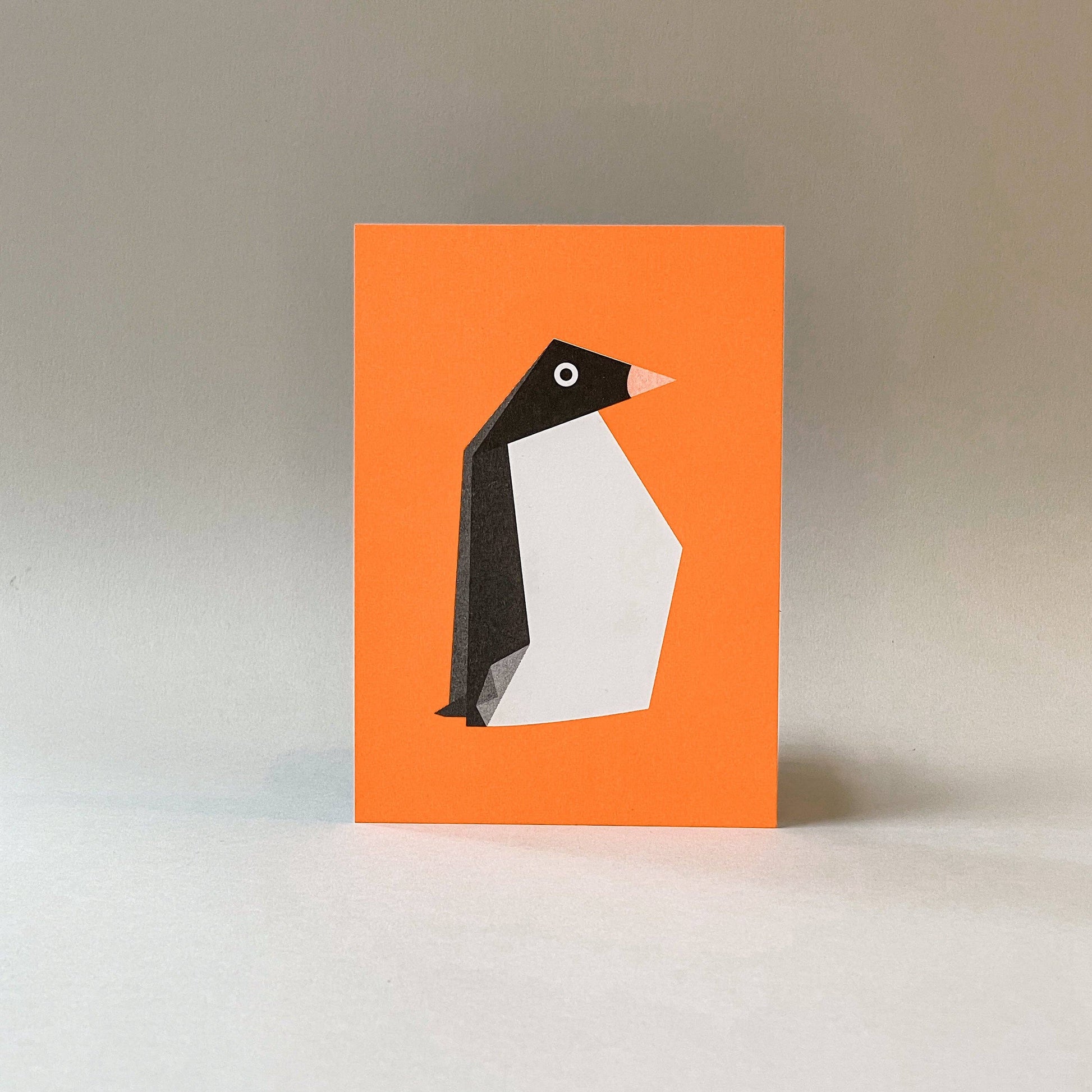 Minimalist and adorable, this Origami Penguin postcard seduces with its geometric style and bright colors.
