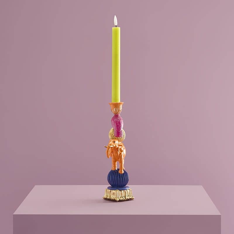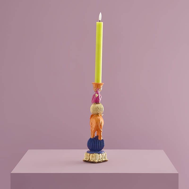 This sculptural candlestick artistically depicts the hand-painted elephant with a cockatoo. It is part of the renowned collection of candlesticks by the designer duo WERNS®.