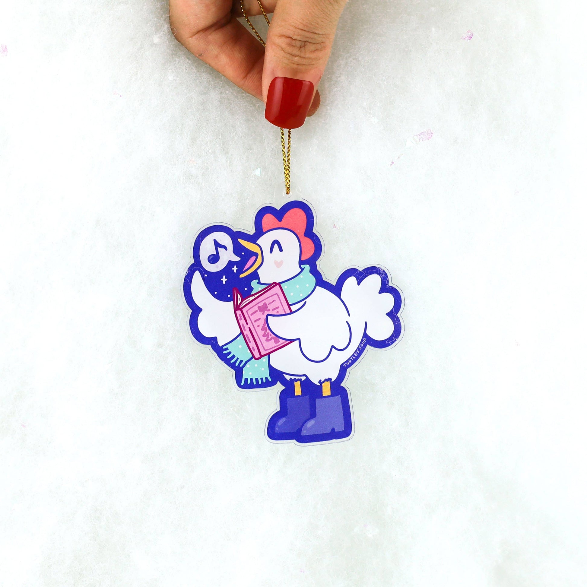 Peggy the Chicken is so exciting to be one of our acrylic Christmas ornaments and would love to hang her on your tree for the holidays!