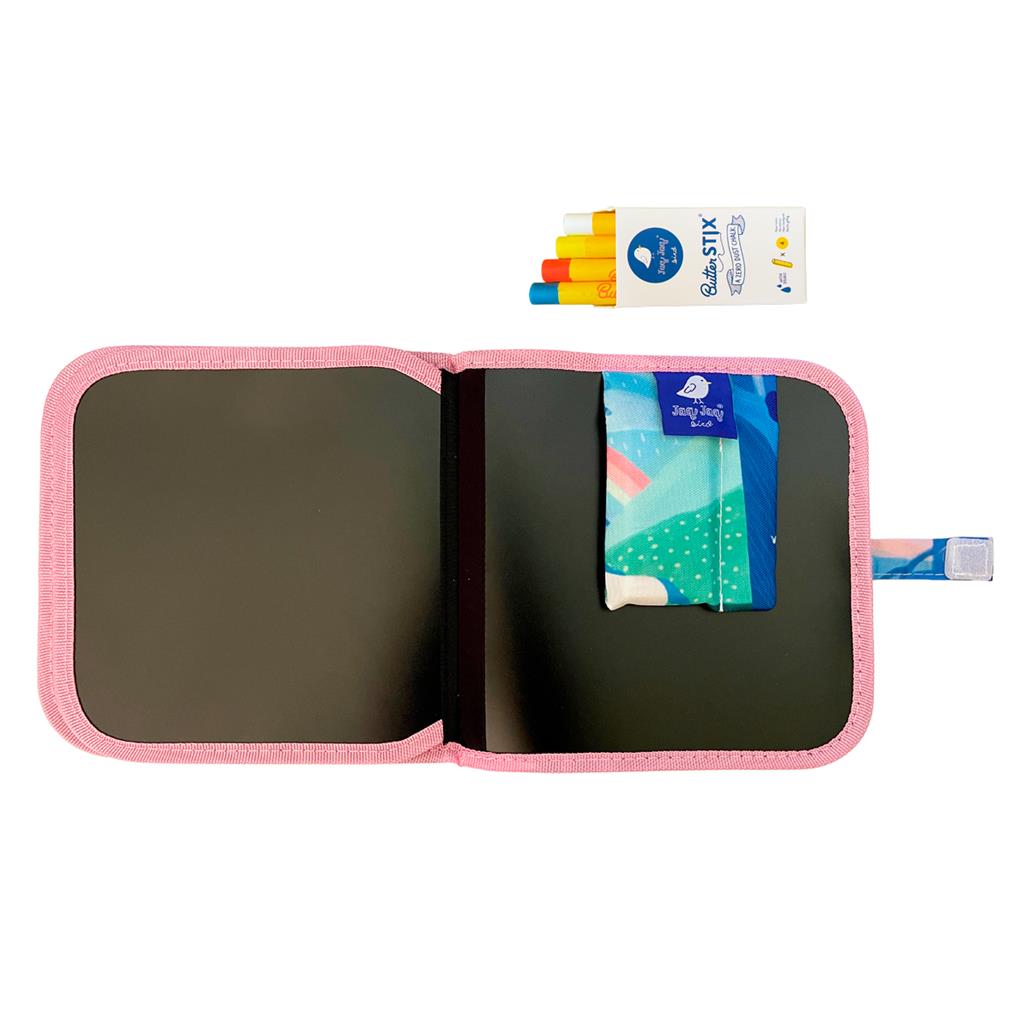The reusable jaq jaq jaq notebook will no longer leave your children's bags. Liser, flexible and resistant It offers 8 pages to fill with drawings and colors with the Craies Butter Stix without dust which are slipped into their small case. An ideal creation medium that we take everywhere!