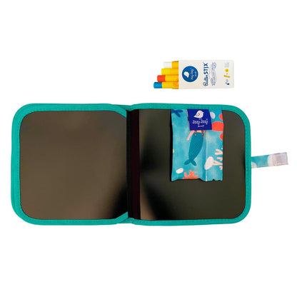 The reusable jaq jaq jaq notebook will no longer leave your children's bags. Liser, flexible and resistant It offers 8 pages to fill with drawings and colors with the Craies Butter Stix without dust which are slipped into their small case. An ideal creation medium that we take everywhere!