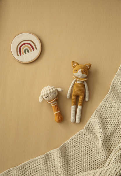 Each toy is filled with an ecological polyester fiber certified according to the Oeko-Tex® standard 100 class I. span> Maple wood ring. Each piece is made by women craftsmen with magic hands, using traditional techniques. span> by choosing the Patti Oslo products you help to give an equitable income to these talented women. span> ethically made in Turkey. span> Interview: Always use a soft detergent and cold water. Start by cleaning the stains. If cleaning of the spots is not enough, choose a hand washing program at 30 ° with a soft baby soap, spin at low speed, dry flat. span>