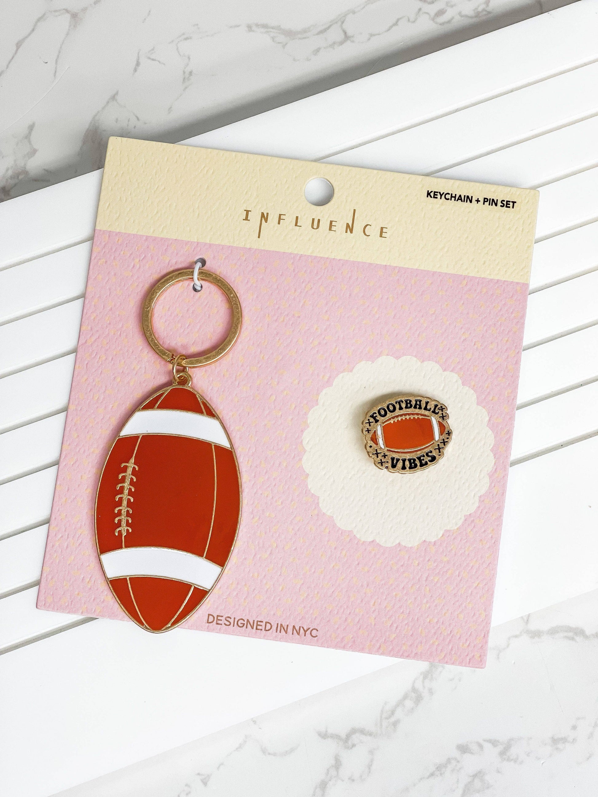 Prep Obsessed Wholesale presents the Sports Enamel Keychain and Pin Sets. Each set includes a vibrant enamel keychain and a matching enamel pin. This is the perfect accessory for the style-conscious, adding a pop of color and fun to your everyday essentials. Get your set today and upgrade your accessory game.