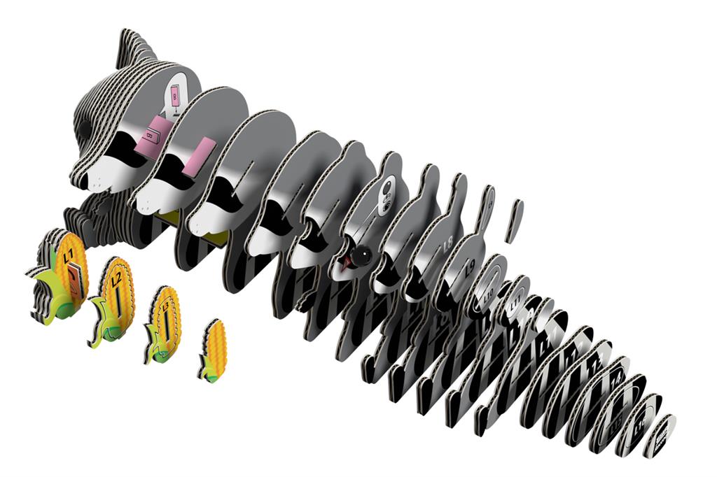 Our products are 100% compliant with international safety standards (EN71-1,2,3 and CPSIA). One EUGY pack contains 7 flat cards with individually numbered parts, all ready to be assembled.