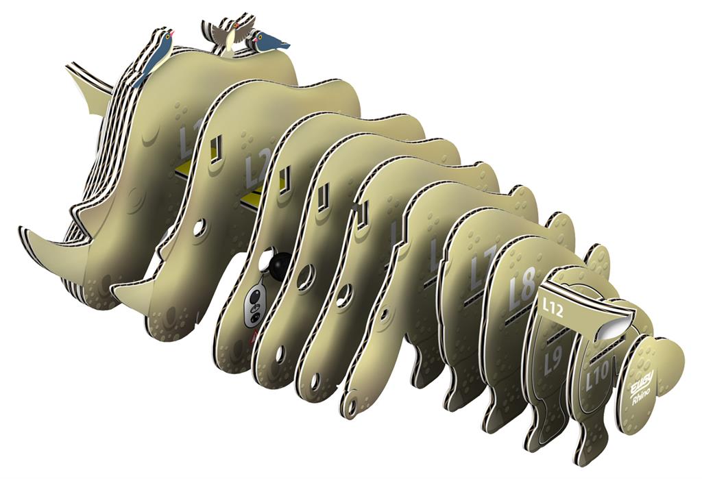 Eugy 3D Model: WILD ANIMAL / RHINOCEROS 8.6x4.3x5.8cm, cardboard, boxed, 6+