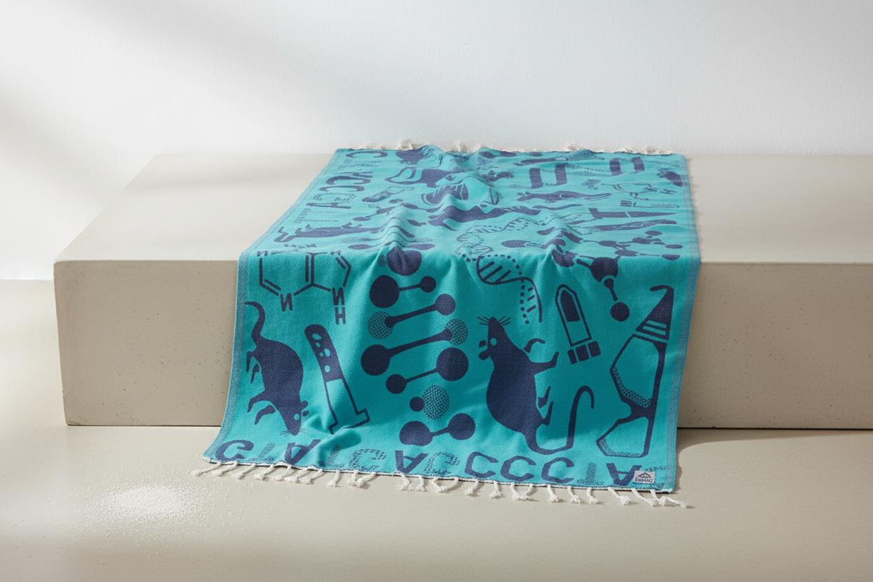 This Cognitive Surplus fouta combines textile elegance with the scientific world.