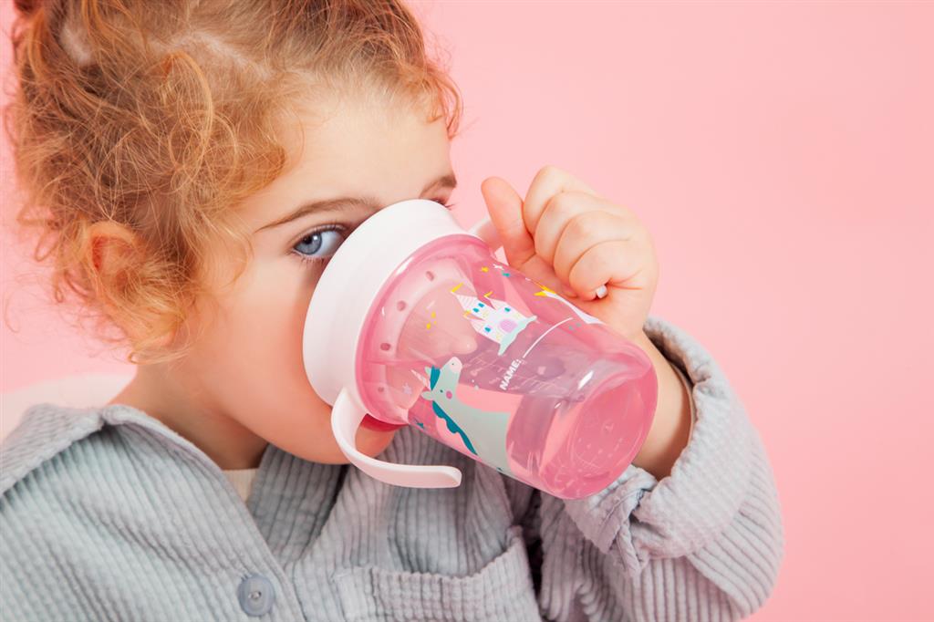 Perfect for little dreamers, this pink cup is decorated with unicorns, royal swans and enchanted castles 🏰. Thanks to its 360° leak-proof system , your child can easily drink from any side of the rim — without spilling a single drop!