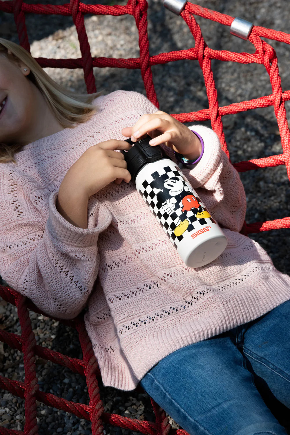 Celebrate the timeless charm of Mickey Mouse and his 70th anniversary with this retro-inspired 0.6-liter water bottle. Its leak-proof cap stays tightly closed even with carbonated beverages or when the bottle is placed horizontally or upside down. The lightweight yet durable aluminum bottle withstands rough handling, and its wide neck allows for easy filling and cleaning. The interior coating won't absorb flavors and is resistant to fruit acids, so every refreshing sip tastes just as good. It's also designed to stand the test of time, just like Mickey Mouse, making it the perfect alternative to single-use plastic bottles and cups. The recyclable material is free of BPA and phthalates, which are harmful to you and your children.