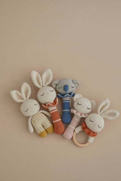 Each toy is filled with an ecological polyester fiber certified according to the Oeko-Tex® standard 100 class I. span> Maple wood ring. Each piece is made by women craftsmen with magic hands, using traditional techniques. span> by choosing the Patti Oslo products you help to give an equitable income to these talented women. span> ethically made in Turkey. span> Maintenance: hand cleaning with a soft detergent and cold water. span>