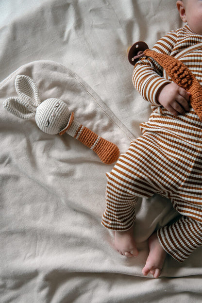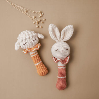 This classic rattle with its little rabbit head is easy to hold and it makes noise thanks to its bell when you shake it. span>