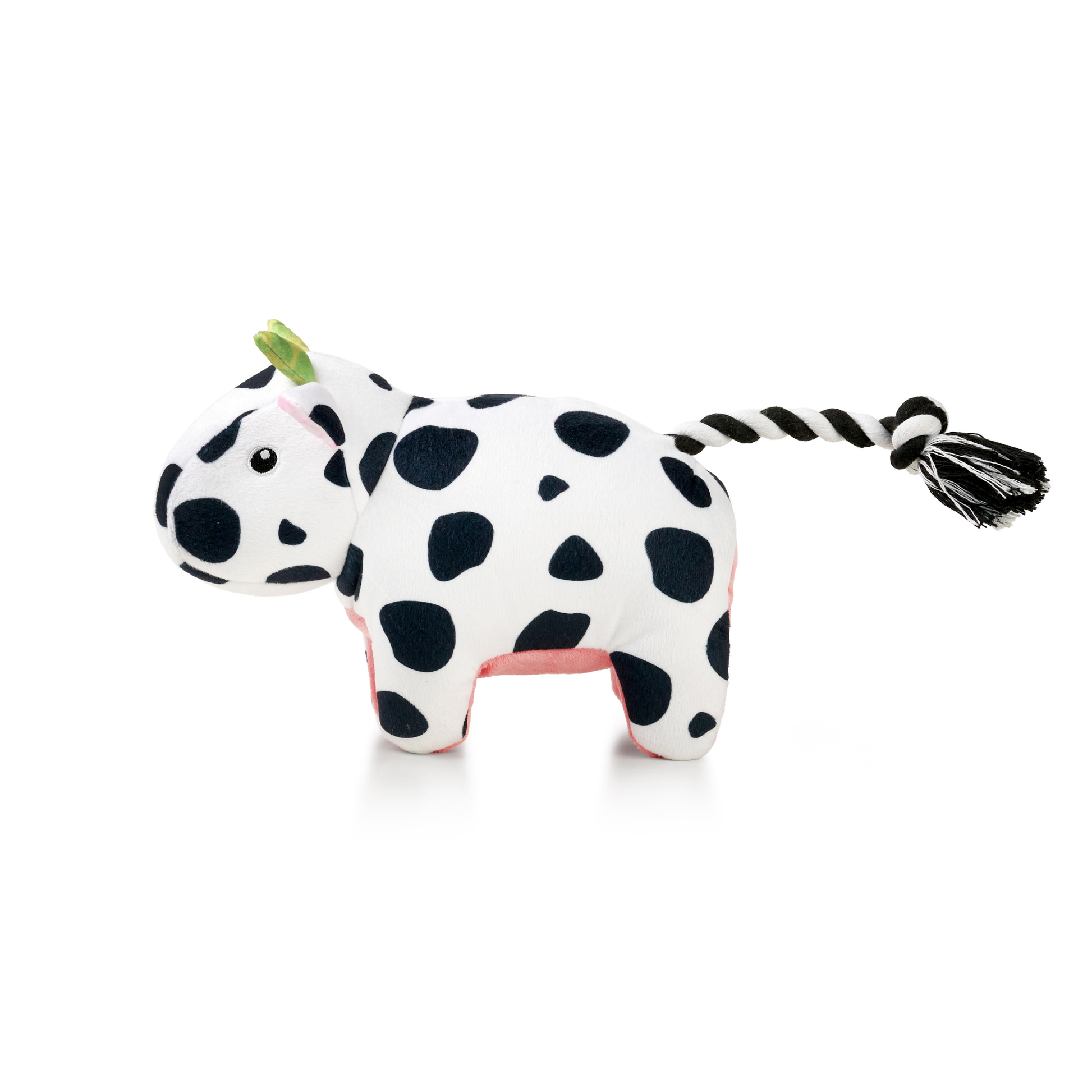Huggles Cow Claire est un jouet pour chien conçu avec amour qui combine parfaitement le plaisir du jeu et le temps de câlins. Avec son couineur intégré et sa queue en corde robuste, il offre une variété d'activités – du tiraillement et de la mastication aux câlins. Son motif classique de vache noire et blanche en fait également un véritable accroche-regard dans le panier à jouets pour chiens. Détails du produit : Design de vache mignon – motif noir et blanc, charmant et unique. Avec couineur – encourage les chiens à jouer et offre une action supplémentaire. Queue en corde robuste – parfaite pour tirer, tirer et mâcher. Corps en peluche douce – idéal pour câliner et transporter. Jouer et câliner en un – polyvalent pour les chiens actifs. Finition de haute qualité – durable, sûr et adapté aux chiens.